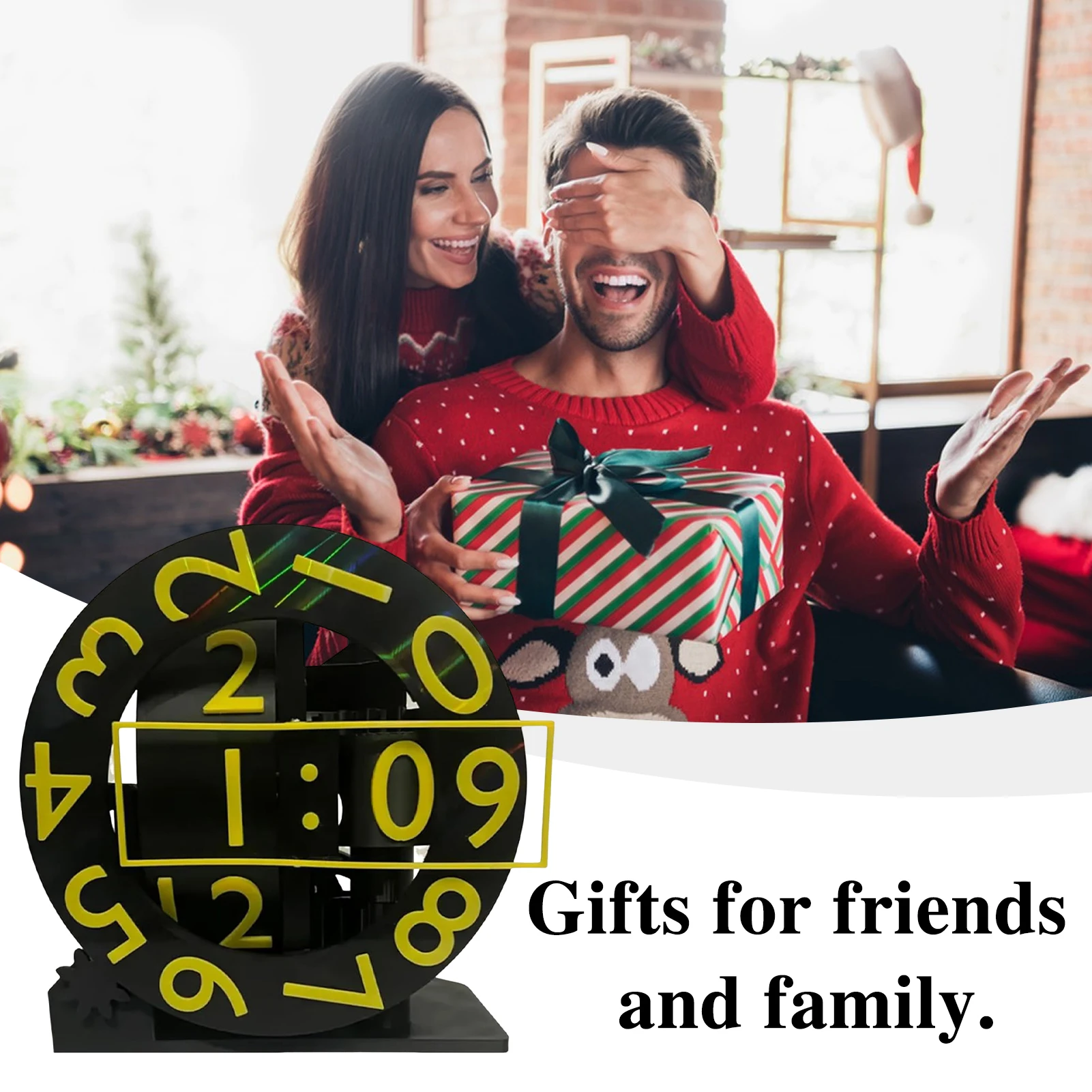 3D Printed Triaxial Clock with Rotating Numeric Display Home Office Living Room Desktop Digital Clock Decoration Tech and Design Enthusiasts Gift
