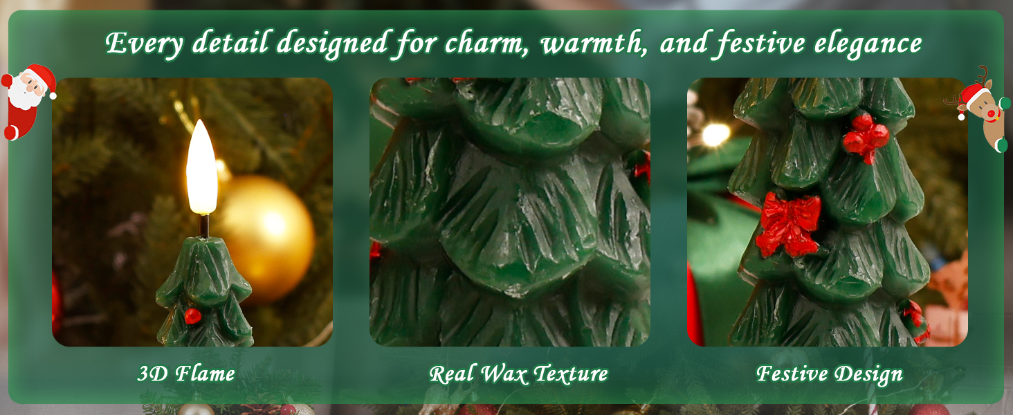 Crafted from real wax with exquisite details, our tree-shaped candles feature a hyper-realistic 3D flame that emits a cozy, flickering warm light—creating the perfect holiday ambiance without any fire risk.