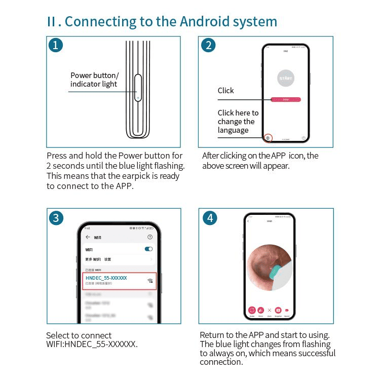 Experience comfortable and safe ear cleaning with our thoughtfully designed tool. Its one-button start and intuitive controls make it easy for anyone to use, ensuring a gentle and hassle-free process for all ages.